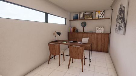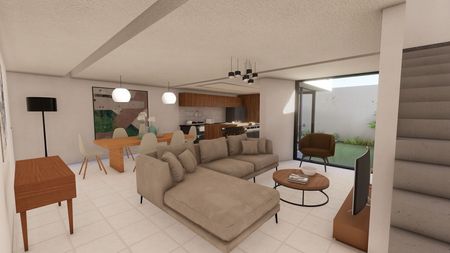 Hermosa Residencia en Tres Niveles, en Planta Baja cuenta con: 2 cajones de estacionamiento. Estancia Comedor Cocina Integral, Medio Baño, Estudio y Bodega.