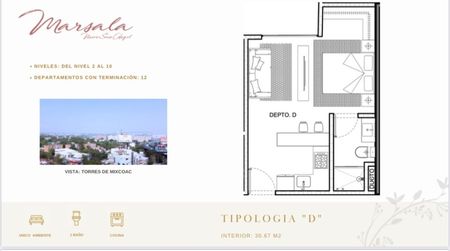 No puedes dejar pasar esta excelente oportunidad de inversión, todas la unidades en menos de $3’100,000 invierte con el mejor y accesible plan de pagos que hay en el mercado, preventa a 20 meses, un proyecto sumamente rentable, Marsala Nuevo San Ángel, te ofrece 10 niveles con la mejor ubicación, calidad, el mejor precio en la zona, unidades atractivas para renta temporal y renta de larga estancia, departamentos desde 30m hasta 40m, amenidades únicas de bajo costo, diseñados por el prestigiado despacho de interiores ESKEMA, con distribuciones funcionales, premium suits.