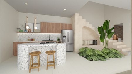 - Cocina de piedra pulida.