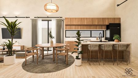 Casa en preventa ubicada en Chelem Puerto dentro de privada. Con diseño arquitectónico contemporáneo on toques mediterráneos se distingue la propiedad por su estilo Wabi Sabi con dobles alturas, pronunciadas curvas, acabados en Chukum, piedra natural y amplias jardineras que dan vida. Además es Smart Home.