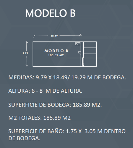 - Baño con un área de 1.75 x 3.05 m dentro de la bodega