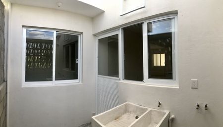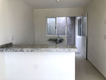 Garaje p/2 autos, sala, comedor, cocina con barra, recamara, baño completo, área de servicio.