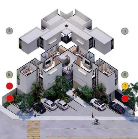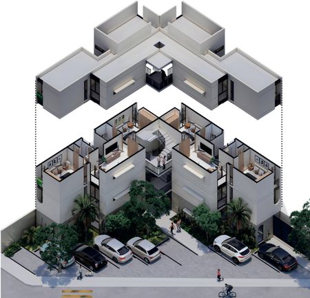 Equipamiento cada departamento cuenta con cisterna de 1,400 Its, hidroneumático y calentador de paso.