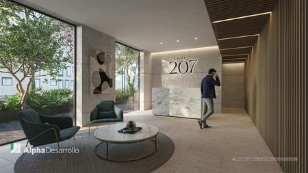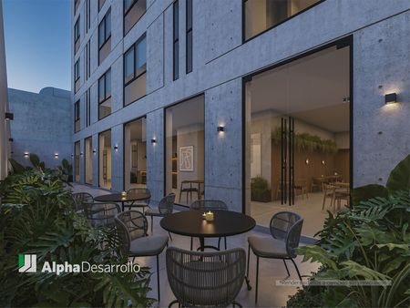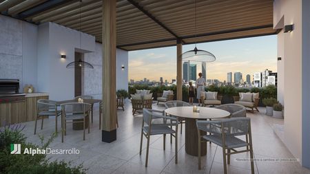 Este proyecto de Alpha Desarrollo, diseñado por el reconocido despacho Space, se compone de 40 exclusivos departamentos distribuidos en 11 niveles, más una planta baja con espacio comercial. Todos los departamentos cuentan con vista exterior y balcón privado, lo que permite una conexión directa con la vitalidad del barrio, privilegiando la iluminación natural y la ventilación.