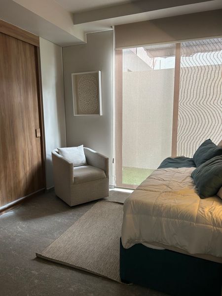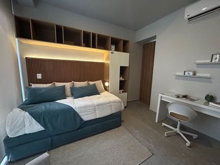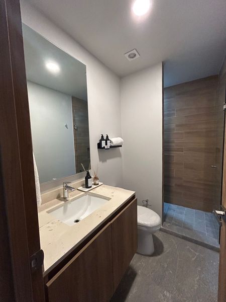 Cuenta con más de 10 amenidades como: gym, ludoteca, salón de usos múltiples, co-working, roof terrace, sky pool, fire pit, ciclopuerto, zona grill, jardín.