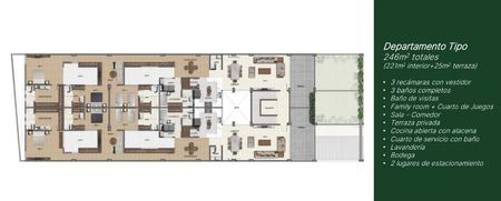-Departamento tipo: 221 m2 habitables + 25 m2 de terraza,