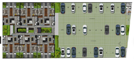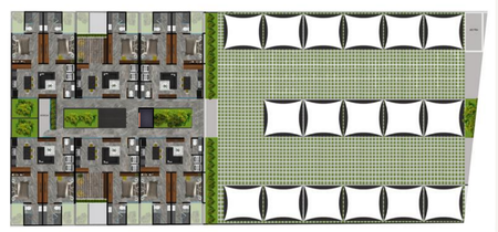 Estacionamiento techado con malla-sombra.