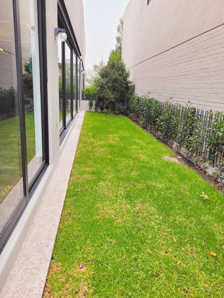 - Jardín trasero y lateral, con amplio espacio para disfrutar momentos al aire libre