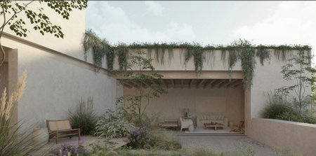 En la parte posterior el tercer jardín es enmarcado por los espacios de la habitación