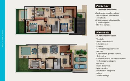 • 2 Recámaras con clóset vestidor y baño completo