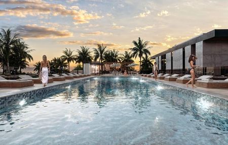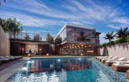 Social pool, Sky pool, Asoleaderos con camastros, Event hall, Sport bar, Gym & Welness center, Fire pits, Restaurante, cancha de paddle, jardines y Pet park.
