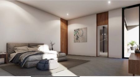 Cocina equipada, isla, parrilla, campana y alacena Dos recámaras secundarias con baño, vestidor y