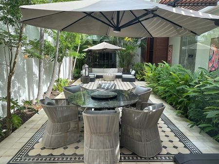 -Terraza con área de sala y amplia mesa para comidas y convivencia