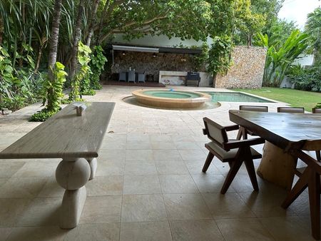 Exclusiva residencia de lujo en venta, ubicada en una privada campestre en la zona norte de Mérida. Esta espectacular propiedad de un solo nivel está diseñada para ofrecer el máximo confort y privacidad. El fraccionamiento cuenta con vigilancia 24/7 y áreas recreativas, incluyendo un parque infantil.