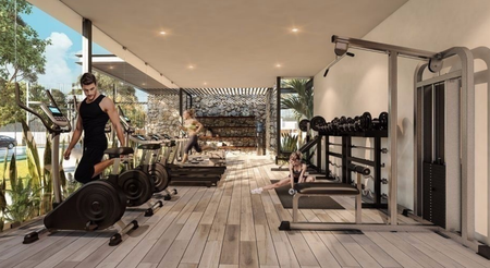 equipos de peso integrado y peso libre además de máquinas cardiovasculares como bicicleta indoor, caminadora, etc.