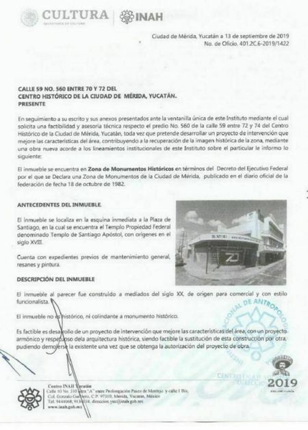 carta del INAH sin vigencia para hacer adecuaciones o demolición. Listo para