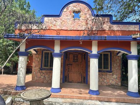 Quinta campestre en venta ubicada en el fraccionamiento Puerta Dorada, en Cadereyta, N.L. La propiedad cuenta con un terreno de 1,240 m² y una construcción que incluye cocineta, sala con minisplit y chimenea, así como dos recámaras, cada una con baño completo y minisplit.