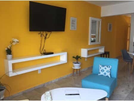 Este amplio e iluminado estudio es ideal para rentas vacacionales o para ser su propio hogar en el paraíso. Ofrece 60 m² de espacio habitable y recibe mucha luz natural del Caribe. Ofrece un diseño de planta abierta que incluye una cama, área de estar, mesa de comedor y un escritorio. La cocina está equipada con refrigerador de tamaño completo, microondas y estufa eléctrica. Los ventanales corredizos se abren hacia un balcón privado techado con vistas a la ciudad, el lugar perfecto para disfrutar del desayuno o una copa de vino al atardecer. Este departamento tiene pisos de azulejo y acabados de alta calidad, duraderos y fáciles de mantener. Se ofrece a la venta completamente amueblado y equipado con ventiladores de techo y aire acondicionado.