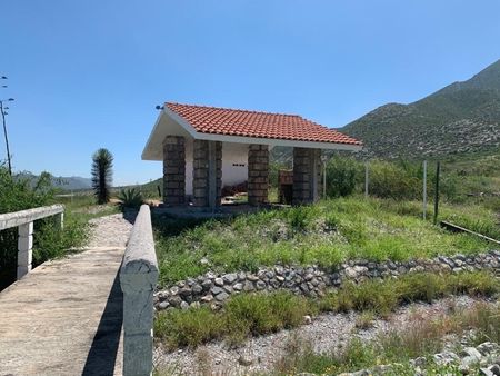 Quinta que colinda sobre carretera Monterrey-Saltillo con hermosas vistas y mucha vegetación. Son 15,121 mts con una cabaña y palapa de 282 mts. La cabaña cuenta con sala y 2 recámaras y 2 baños, terraza y chimenea. Palapa con asador y medios baños. Uso de suelo mixto.