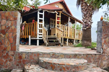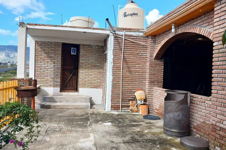 Área de alberca con equipo de bombeo de 35mil litros, salón de eventos. Equipada con cocina y casa en planta alta con 2 recámaras, sala, cocina, 1 baño completo, área de evento social semi abierto, con capacidad para 250 personas con 2 baños para damas, 1 baño para hombres, tiene 3 fosas sépticas, luz 220 y 110.