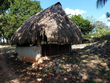 Cuenta con una casita artesanal con techo de guano que se usa como bodega.