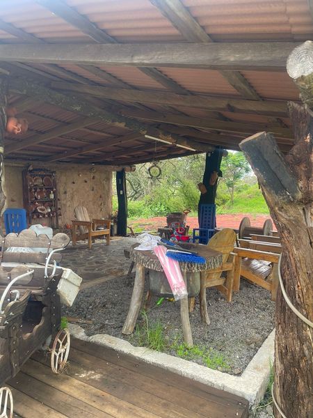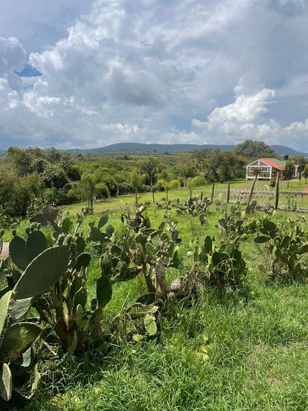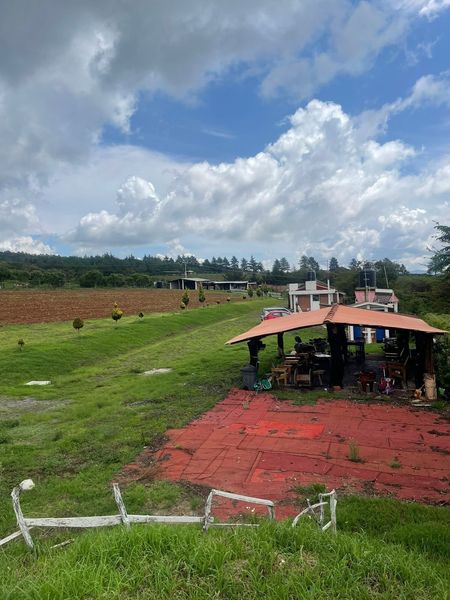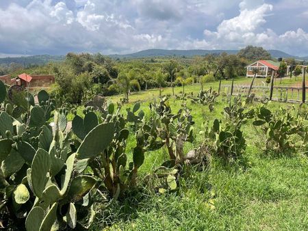 Extensión total de una hectárea (10,000 m2). Cuenta con una construcción de cabaña de 90m2 con tres habitaciones, un baño y medio, sala y cocina. Área de asadores, baños de hombre y mujeres en el exterior, cuarto con preparación para sauna. Cuenta con una olla de agua, toma directa de agua potable, cisternas, fosa séptica e instalación de luz. Área para sembrado.