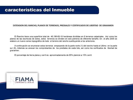 A continuación se enumeran estos terrenos empezando de la parte norte (1) del rancho hasta el último en la parte sur (8), Además se anexan los comprobantes de los prediales de cada lote, así como los cerificados de libertad de gravamen.
