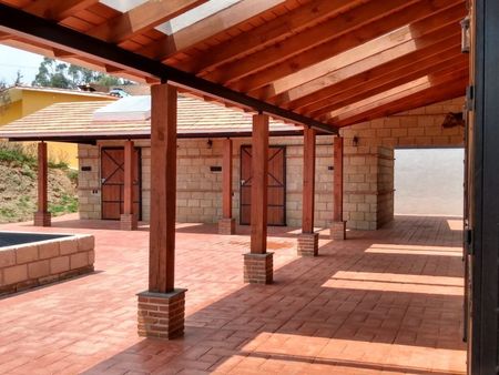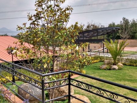 *CASA PARA VISITAS* Estancia con Chimenea, Cocina con Barra que comunica al Comedor, 4 Récamaras con closet, 2 con baño completo y las otras 2 comparten baño. AREAS DE ESPARCIMIENTO: Cancha de Fronton, baños de servicio, Alberca techada con baño y vestidores, Cancha de Fut-bol rápido, Caballerizas. Paneles Solares, Calderas, Planta de Luz, 6 cisternas, 2 tanques estacionarios de gas LP, Calentadores Solares, Sistema de recolección de aguas pluviales, Caseta de Vigilancia con cámaras.