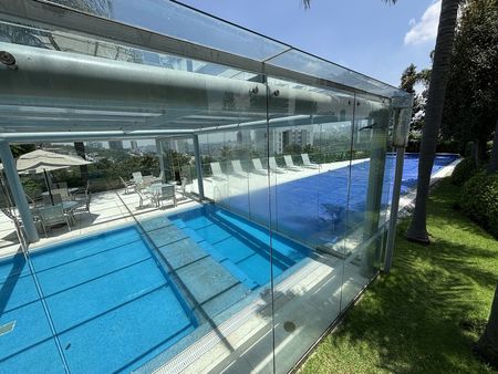 Hermosa alberca semitechada.