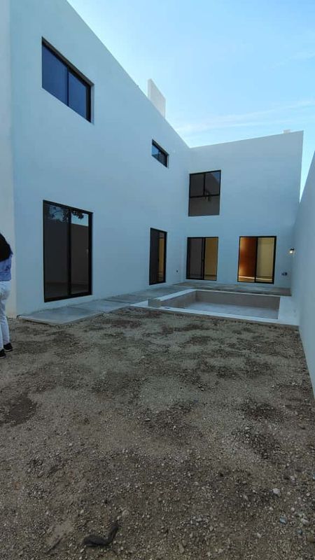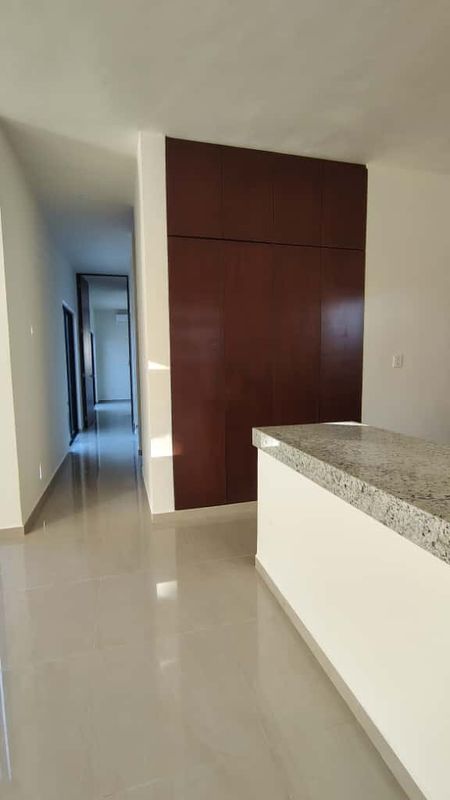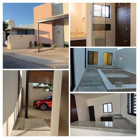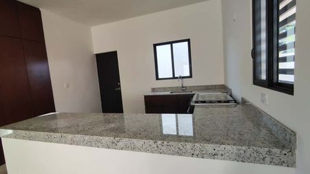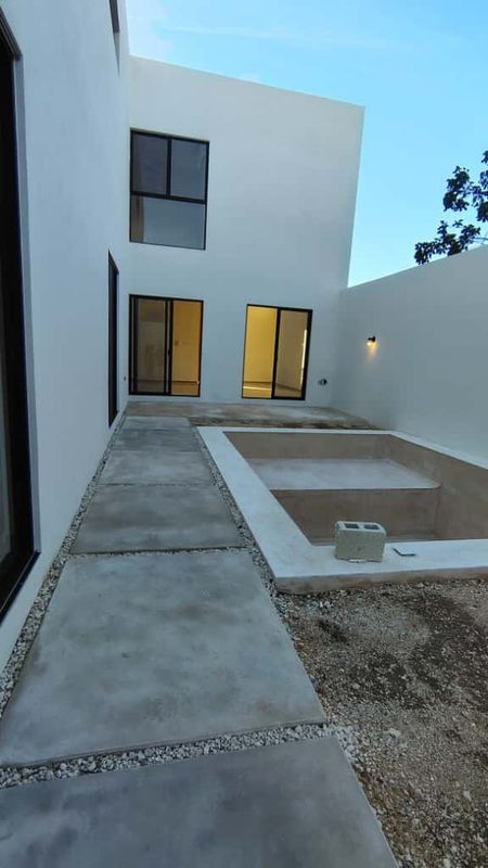 Renta de casa en conkal a estrenar, en un franccionamiento nuevo, cerca de plaza la isla, cholul, plaza Altabrisa, y a 15 minutos de la playa. con 3 recamaras, recamara principal con closet vestidor, techo de doble altura en la sala y aire acondicionado, cocina equipada con estufa, gabetas de madera en la cocina, alberca con bonba de agua y acabado de chukum, cochera techada para 2 autos, area de lavanderia con lavadero. boiler estacionario,