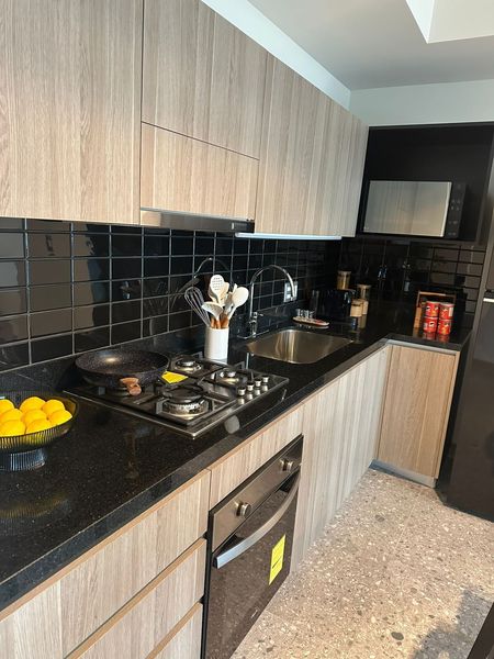 • Incluimos en Departamentos: Parrilla de Gas Natural, Campana de Cocina, Persianas, Horno de Microondas, Refrigerador, Pisos cerámicos, Cocina equipada con cubierta de granito.