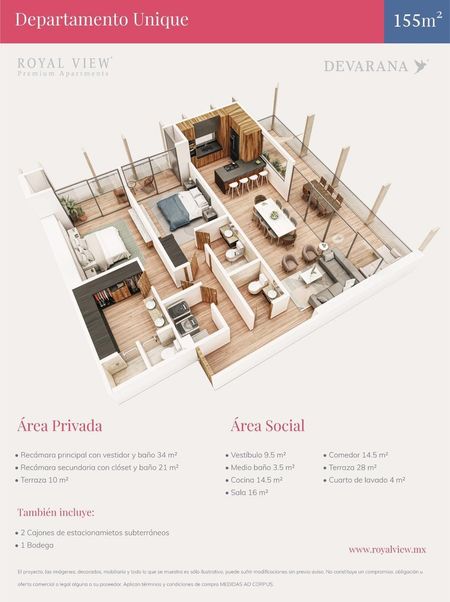 Con 155 m2 de puro lujo, este departamento cuenta con: