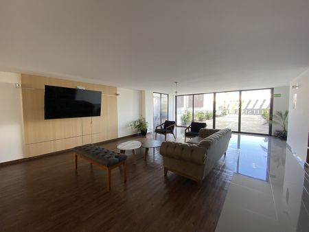 2 habitaciones una con walking closet y la otra con amplio closet, 2 baños completos equipados con cancelería de templado, family room, estancia, cocina equipada con barra de granito, terraza con bella vista, área de lavado ventilado, dos lugares de estacionamiento.