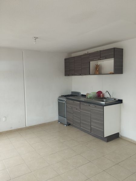 Cuenta con dos recamaras con closet, un baño, cocineta, patio de servicio totalmente techado, protecciones, mosquiteros.