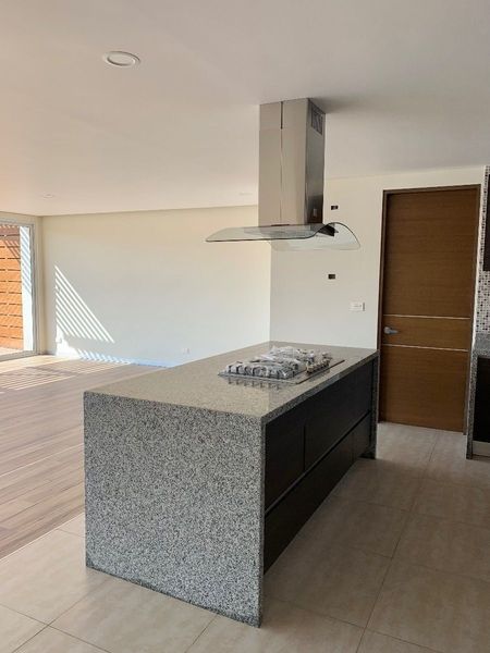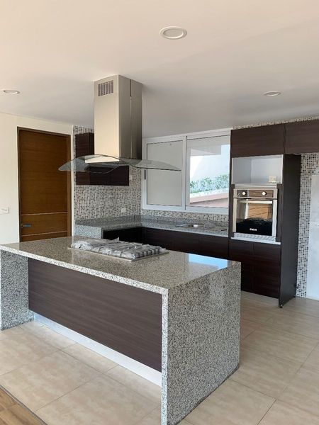 amplia estancia, tres recamaras, cada una con baño independiente, cocina equipada con estufa, lavavajillas y horno para cocinar.