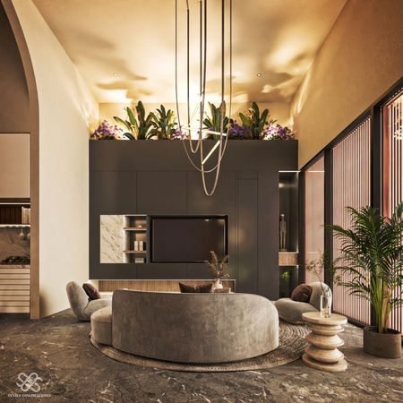 La residencia Balam tiene un diseño arquitectónico contemporáneo con toques mediterráneos, se distingue por su estilo Wabi Sabi con dobles alturas , pronunciadas curvas ,acabados en chukum , piedra natural y amplias jardineras que dan vida y un estilo único a la fachada e interiores. , ademas de ser un Smart Home controlada desde la app de tu teléfono.