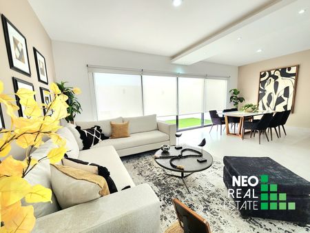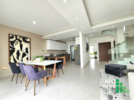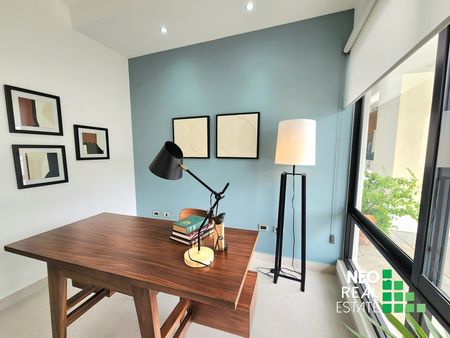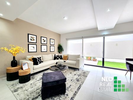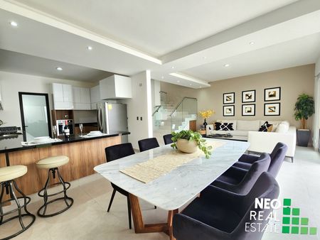 Con una gran cocina, área de lavado cerrada, medio baño de servicio, y amplia estancia que se fusiona con un divino espacio de jardín.