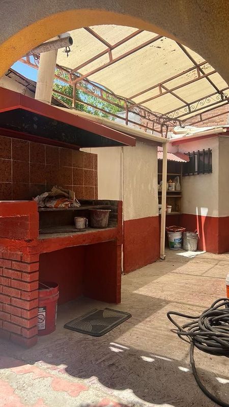 Residencia con un estilo unico, con espacios amplios, cochera para 3 automoviles, y area para oficina o taller exterior e interior en zona centrica.