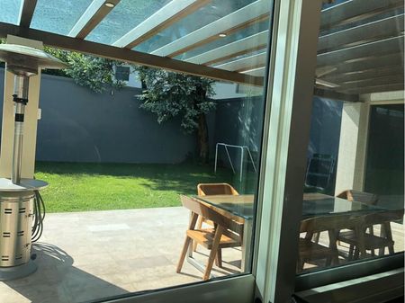 Sótano: estacionamiento 3 autos con otro acceso, baño completo visitas. Cuarto servicio con baño, área de servicio