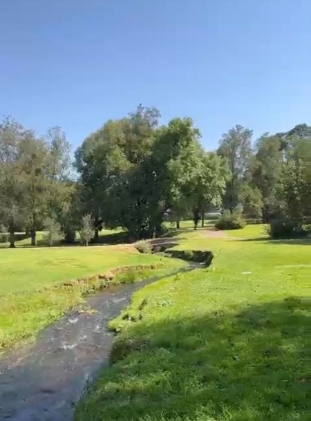 Tiene un amplio terreno plano de 2100 m2 con colindancias al Sur, Este y Oeste con río de aguas cristalinas del deshielo del Nevado de Toluca y al Norte con el Fairway del Club de golf Avándaro. La propiedad tiene 955 m2 de construcción, seis recamaras y cinco baños, una las recámaras es muy grande con seis camas y gran chimenea, tiene una recámara principal de ensueño, ubicada en la planta baja con mini sala, terraza privada y hamaca, un enorme baño doble lavabo, baño con vapor y regadera de presión; hay mucho espacio en la casa para las visitas pues tiene una recepción y tres salas una de ellas se combina con una terraza techada de cristal con impactante vista al campo, family room u oficina.