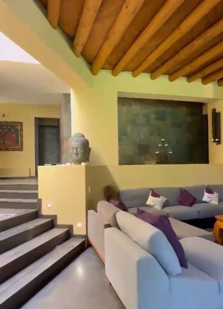 La residencia tiene pequeña casa tipo suites ideal para los de invitados, con tres recámaras, la principal con closet, dos baños completos, sala de yoga y meditación.