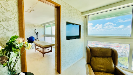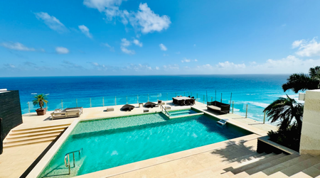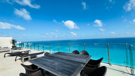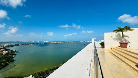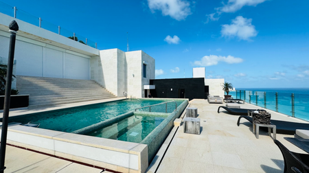 Este espectacular departamento de 355 m² habitables cuenta con una terraza con jacuzzi y vista directa al mar, ideal para disfrutar del amanecer caribeño.
