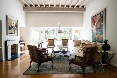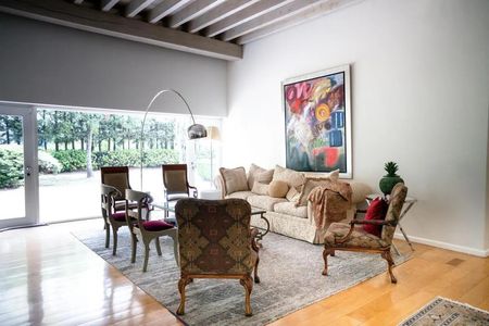 Sala con chimenea, comedor y antecomedor con salida al jardín, family room, cocina Poggenpohl con Sub-Zero, recámara de visitas, área de juegos/gimnasio, cava en sótano con entrada independiente, baño exterior para chofer/jardinero.