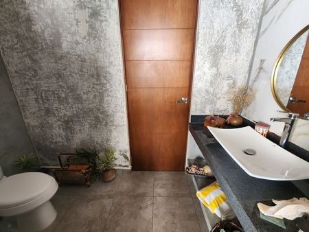 *Medio baño de visitas que conecta con el área de la piscina y patio trasero.