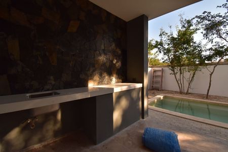Exclusivo diseño con acabados de lujo. Terminados en muros a 3 capas, no yeso. Pisos de mármol en toda la vivienda. Muros de mármol en baños. Amplio portón de ingreso de madera solida de encino. Carpintería en baños y vestidores con mesetas de granito. Muros en fachadas recubiertos en piedra Maya natural y pasta. Cocina integral totalmente equipada, isla con estufa y extractor, hornos de microondas y eléctrico, lavavajillas y tarja de lujo. Cancelería y celosía en fachada de aluminio linea 150 Eurovent. Cristales templados en baños. Sistema de riego automatizado. 7 equipos de aire acondicionado inverter. Piscina con acabado chukum, con sistema de filtros.