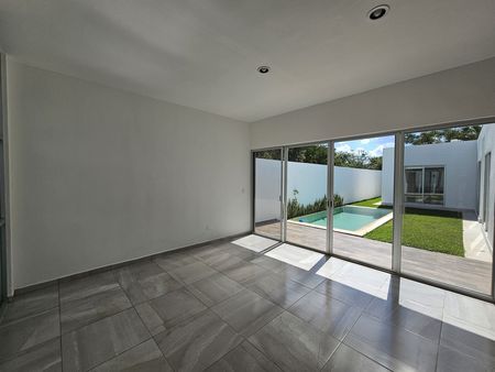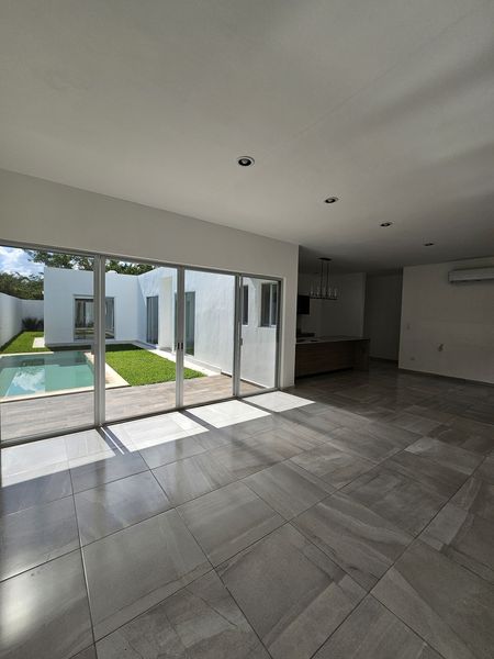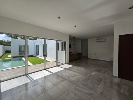 Residencia en privada de una planta en renta a menos de 5 min de la U Anahuac Mayab; estilo fresco, diferente, actual y moderna. La privada está ubicada en la zona con mayor plusvalía al norte de la ciudad, rodeada por avenidas principales, escuelas, universidades, sin perder el encanto de una vida TRANQUILA Y SEGURA.