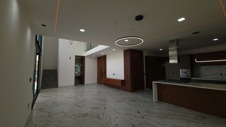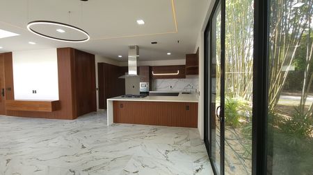 - Lavabos, cocina integral y barra de cuarzo.