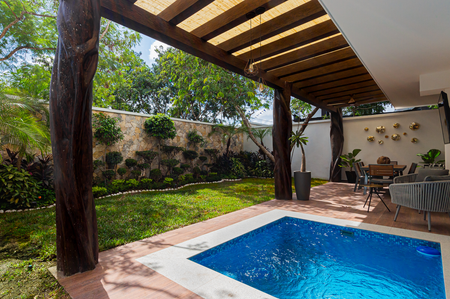 - Terraza con alberca con acabado veneciano, luz led y sistema de filtrado.