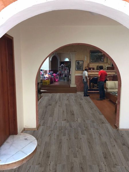 • Patio interior techado de cristal y malla sombra, piso entablado en madera