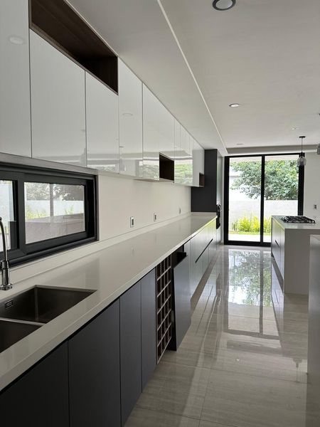 La casa cuenta con equipamiento de primer nivel: barra de granito premium, mármol en baños, cristal templado, iluminación LED, preparación para lavavajillas, cisterna de 5,000 lts e hidroneumático, entre otros detalles que elevan la experiencia de confort.